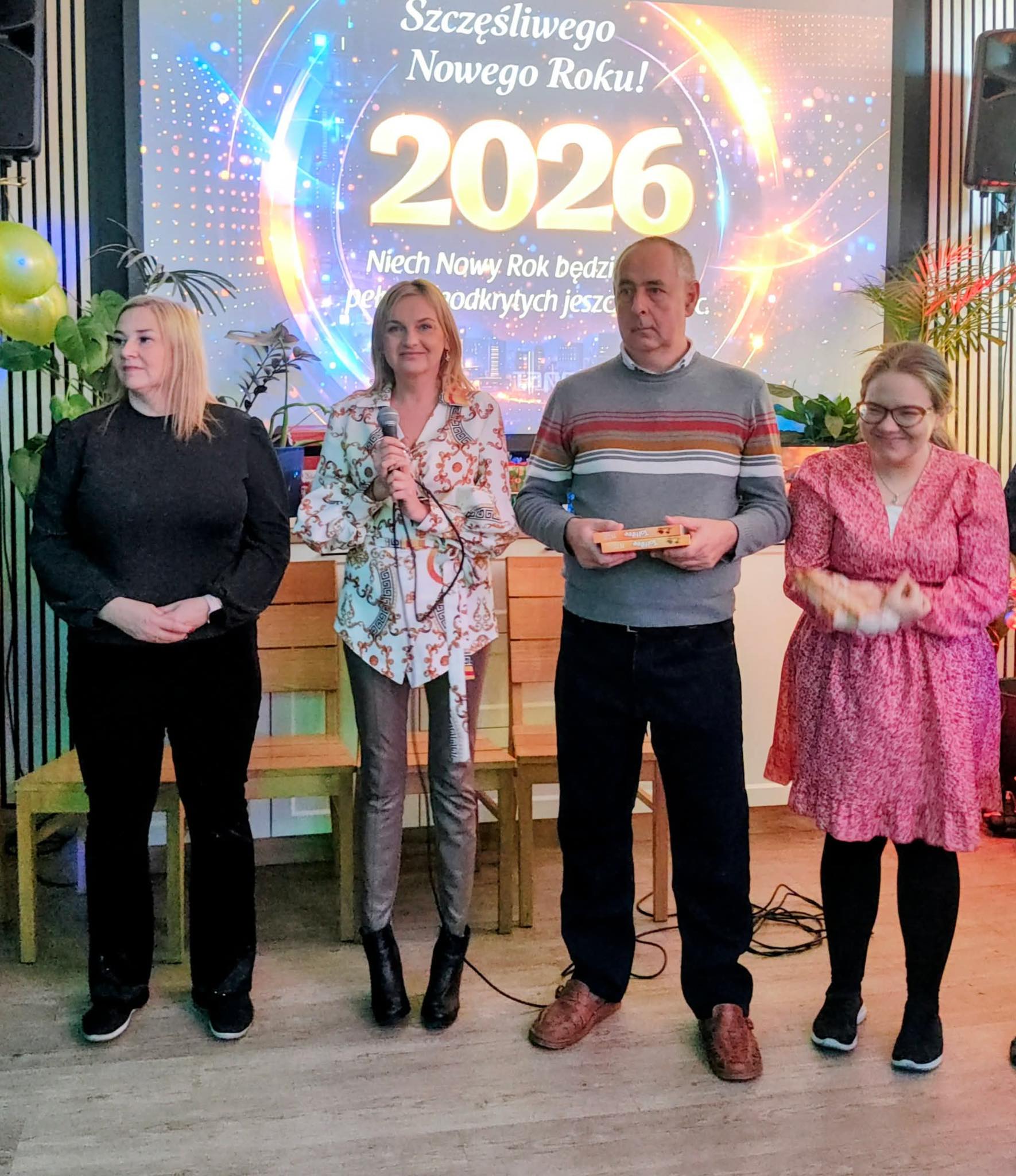 Podczas Zabawy Sylwestrowej Pani Kierownik złożyła wszystkim życzenia i podziękowała na kolejny wspólny rok.
